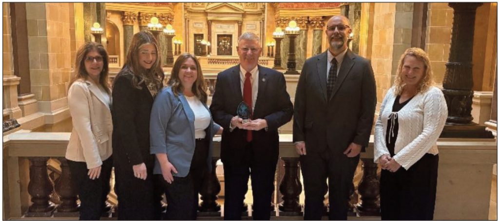 Green County Child Advocacy Center (CAC) Coordinator Stephanie King presented the award to Senator Marklein, in recognition of his efforts to increase state funding for child advocacy centers (CACs) and support legislation benefiting CACs across Wisconsin.